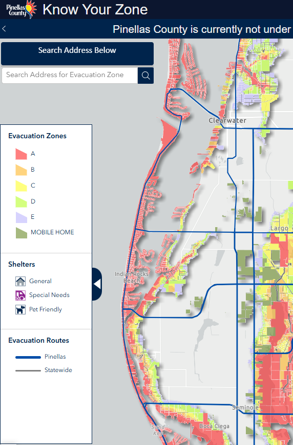 - Use Pinellas County’s interactive flood zone map to check your evacuation level.