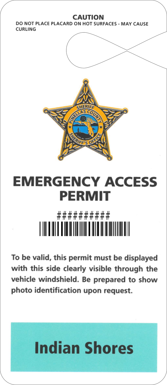 Indian Shores residents, property, and business owners are required to show their reentry passes to be allowed back onto the island. Reentry passes can be picked up at the Indian Shores Municipal Center, 19305 Gulf Blvd., 2nd Floor, Indian Shores, FL, Monday-Friday, 8:00a.m. - 4:00p.m. (holiday schedule varies). Proof of ownership and/or residency is required to obtain a pass. Two passes maximum per household.