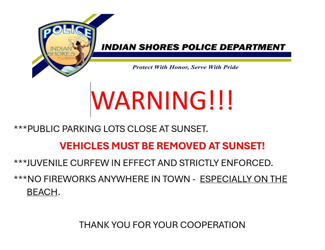 ISPD will have additional Police Officers on patrol in both towns and on our beaches throughout the holiday week.  The Pinellas County Sheriff’s Office is also providing additional personnel and resources to assist with crowd control and with the following efforts: