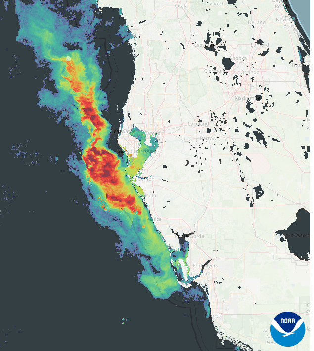 The NOAA has reported a significant bloom off our coast (satellite image below). With the weather issues, FWC has not been able to get offshore to investigate.