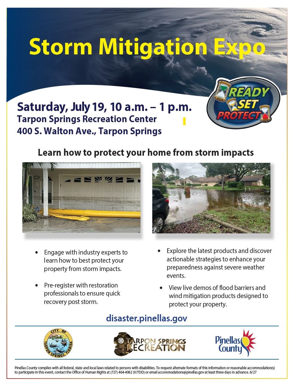 Pinellas County Emergency Management has partnered with Tarpon Springs and St. Pete Beach for Storm Mitigation Expos. These expos will provide attendees with information on how to protect their homes from storm impacts.