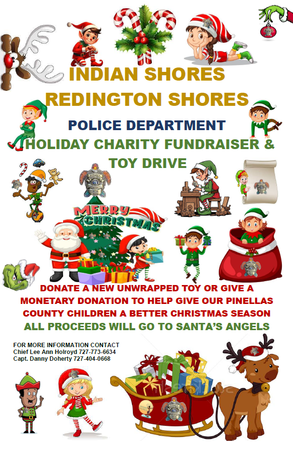 We are also accepting monetary donations for Santa’s Angels.  Executive Assistant, Nadine Esposito created the perfect Indian Shores PD mascot, turtle ornament.  We have the ornaments on the second floor, available during business hours.  We will also have the ornaments available for a suggested $20 donation, at the Tree Lighting on December 1, 2025.